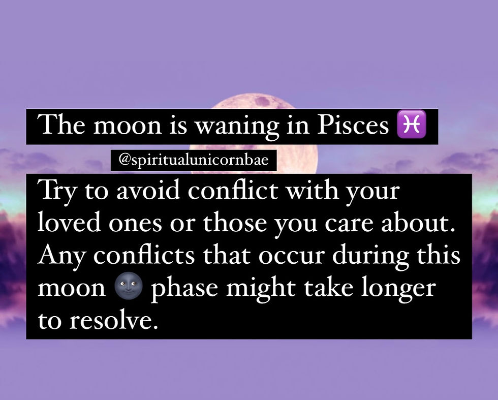When it comes to love š with the Pisces āļø moon; this moon phase gives you power to manifest your feelings and tell your partner or potential partner how you feel about them. This moon phase encourages you to make big decisions when it comes to your relationships. With this moon š phase use this energy to take the time to share your feelings with your partner, family and friends. This moon phase might cause conflicts to arise out of nowhere. Make sure you control your emotions during this moon š phase. Any conflicts that happen during this moon š phase might take longer to resolve.